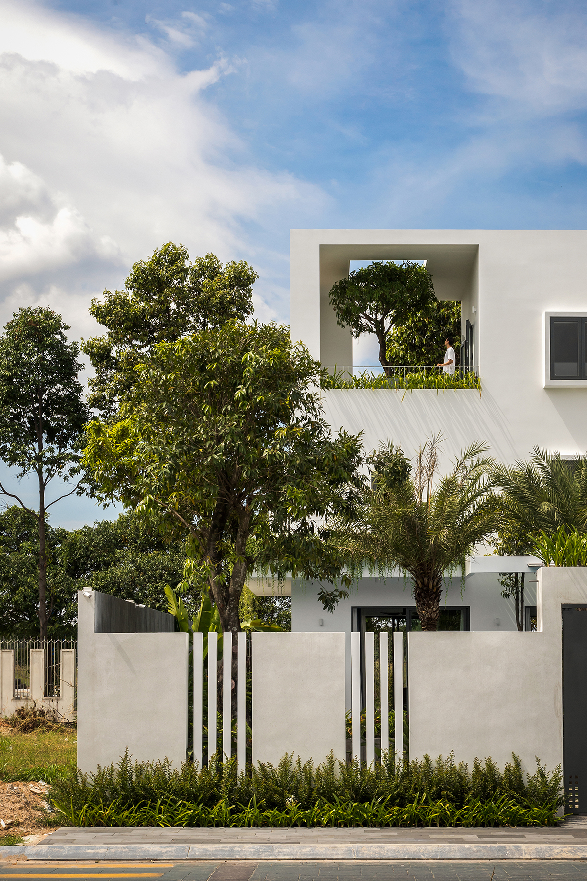 Căn biệt thự 525 m2 ở TP Thủ Dầu Một là nơi ở của gia đình ba thế hệ. Gia chủ mong muốn có một không gian sống nhiều ánh sáng, gió, cây xanh nhằm tăng tính kết nối giữa các thành viên và với thiên nhiên.