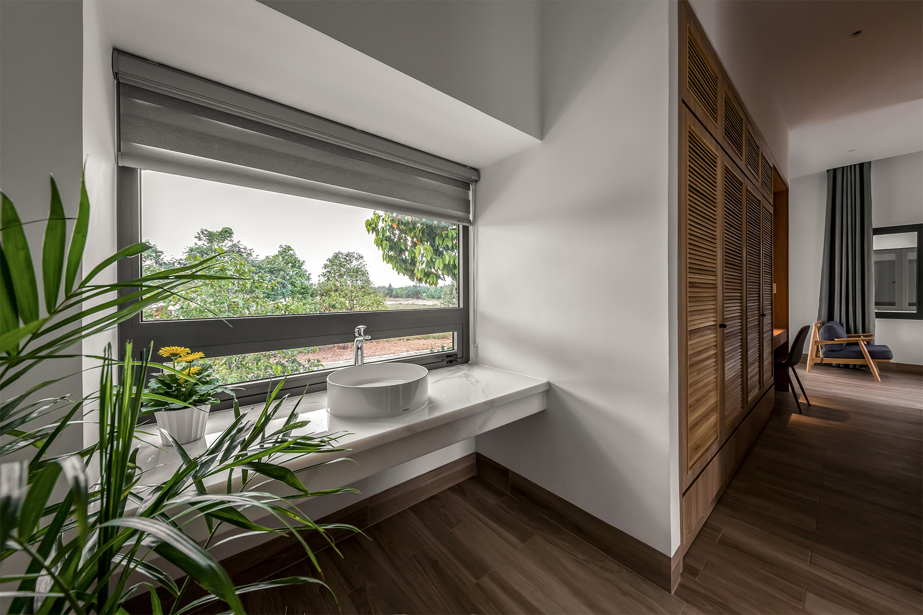 Khối master bao gồm phòng ngủ, khu thay đồ, toilet... được kết nối thành một không gian độc lập. Nhờ đó, ánh sáng tự nhiên có thể tiếp cận được mọi không gian, tạo sự thoải mái và tiện lợi cho gia chủ.