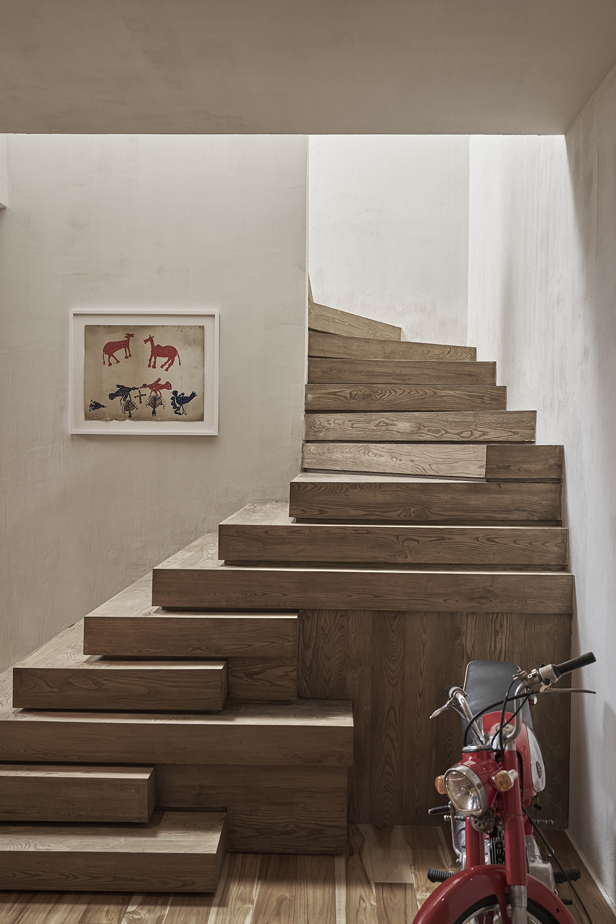 "Chiếc cầu thang giống như một trò xếp hình. Chúng khiến bạn muốn bỏ giày ra, ngồi xuống trò chuyện hoặc chiêm ngưỡng những bức tranh đối diện cầu thang", kiến trúc sư phụ trách lý giải.