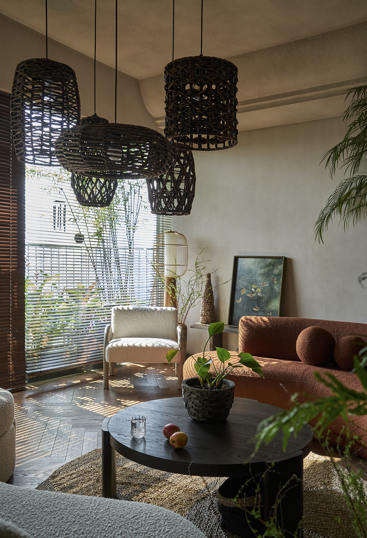 Mây được sử dụng tại nhiều vị trí bởi căn hộ có địa thế khô ráo, không ẩm, không mối mọt. Hơn nữa, vật liệu này thân thiện với môi trường, dễ dàng tạo hình bởi sự dẻo dai.