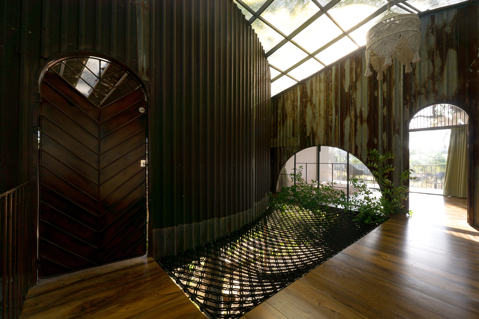 Lý do lớn nhất khiến cả nhóm kiến trúc sư và gia chủ đều quyết định chọn tôn phế liệu làm vật liệu chính là vì muốn ngôi nhà giống như hòa lẫn màu với rừng cây, tránh tác động đến cảnh vật thiên nhiên hiện hữu.