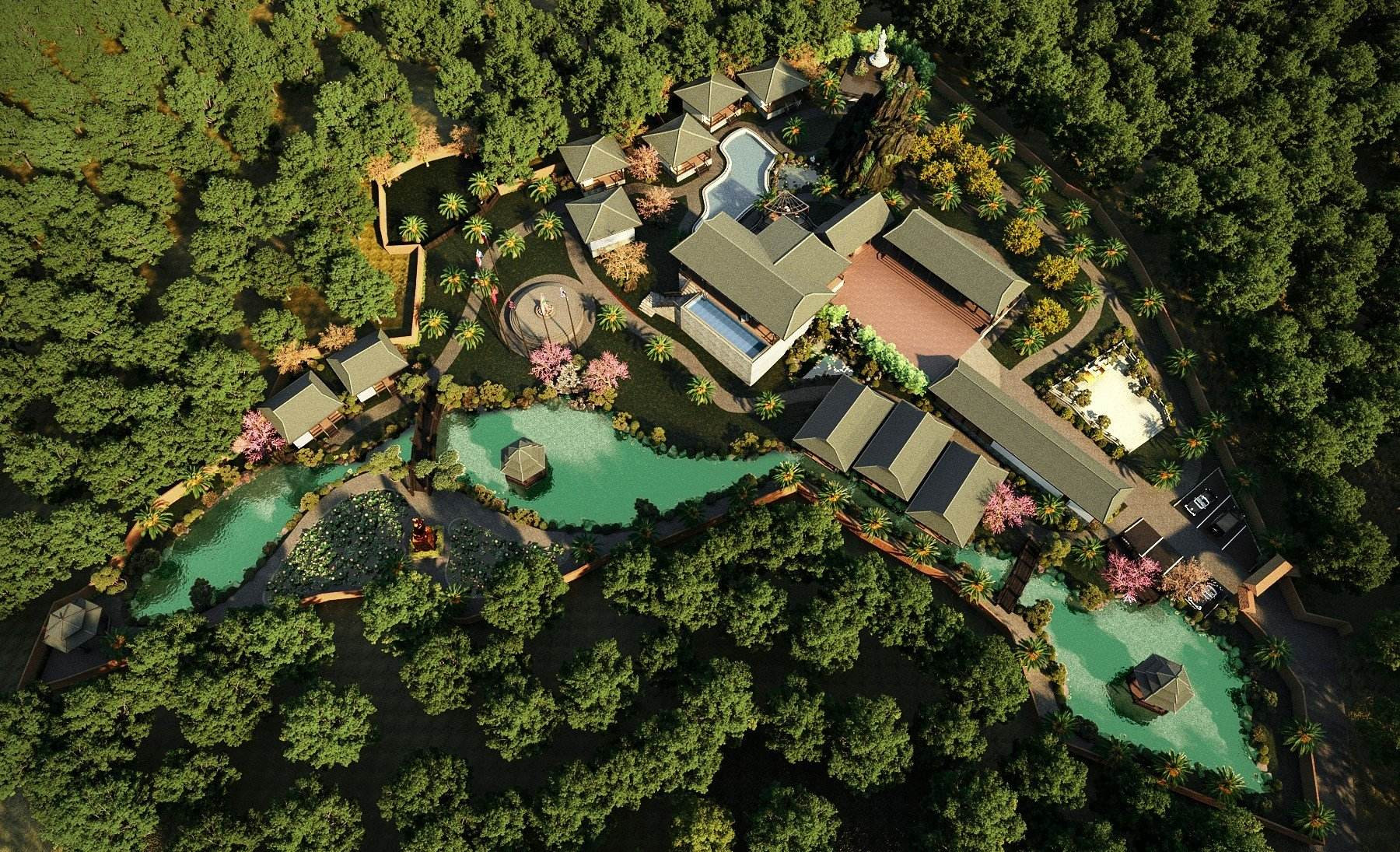 Khu biệt thự triệu đô ở Ba Vì (Hà Nội) được xây dựng trên diện tích đất 11.000m2, do kiến trúc sư Nguyễn Đình Quốc và cộng sự thực hiện.